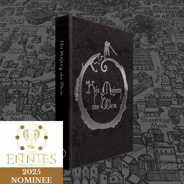 His Majesty the Worm is a tabletop roleplaying game designed for dungeon crawling written by Josh McCrowell and published by Exalted Funeral. The Game Master is given tools to create a megadungeon called the Underworld. The players create adventurers to explore the Underworld in pursuit of their personal quests. Tarot cards are used as a randomizing element.
