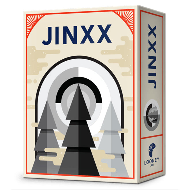 Jinxx is an abstract strategy game for 2-4 players featuring striking stacking pyramid-shaped pieces in three sizes and four colors--black, white, gray, and clear. In Jinxx, players jockey for position on a 3x3 grid. Pyramid size and a die roll determine your possible moves on each turn. Use your move to capture an opponent's piece or better position one of your own pieces. If you own the topmost pyramids in any three-space line through the center, you win! But be careful — you can also be eliminated if you lose too many of your pieces!