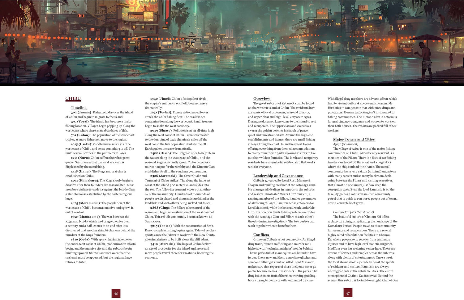 The largest exploration of the Katana-Ra game universe to date, the World Book is a campaign setting revealing completely new detail on the world, its inhabitants, its nuances, and more - with the depth you need as a Player or Game Master to immerse yourselves thoroughly in this amazing universe.