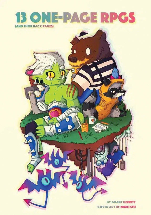 In 2016, Grant Howitt decided flippantly to write a one-page roleplaying game every month and release it for free online. Little did he know that the barely-intelligible pen-and-ink scratches he turned out would go on to define his career, and the shape of roleplaying games, for years to come. Played by thousands of people all over the world, Grants one-page games run the gamut from strange to silly, daft to deadly serious, and powerfully original to potentially copyright-infringing. Each volume contains (at least!) 13 games in their original single-page format, complete with SECRET BACK PAGE material for every game thats never been released online. Plus, where relevant, the longer games Grant and his collaborators have released are printed in full-colour, saddle-stitched booklets. Each game has been written, illustrated (sorry) and laid out entirely by Grant, unless someone else helped him, in which case it says so. As of 2024, all these volumes come in US Letter size, in a sturdy cardboard folder with a spine.