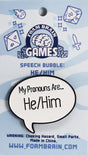 Speech Bubble Pin: He/Him Pronouns is backordered and will ship as soon as it is back in stock.