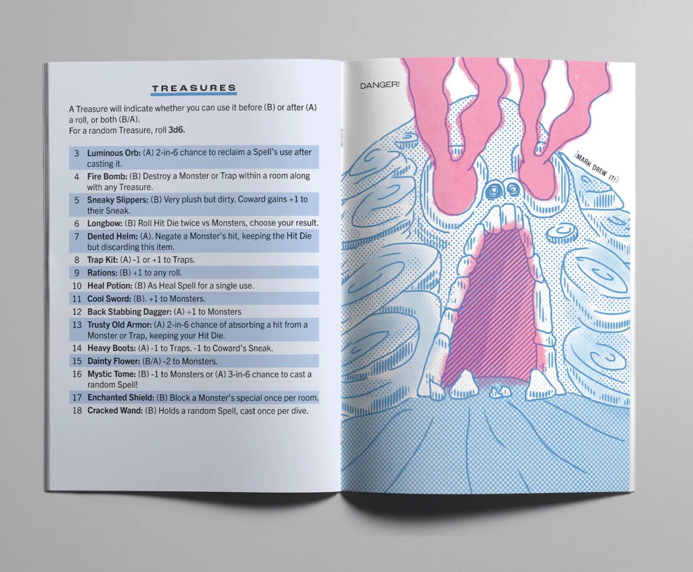 Welcome to Spirals, a solo dice game for the brave! All you need is a d6 (a handful will help), pencil, paper and time to kill. Quick character creation and easy to learn rules will having you delving deep in no time. Death comes quick to the unprepared, but luck and smarts -mostly luck- will carry you through to the end where glory and booty await.